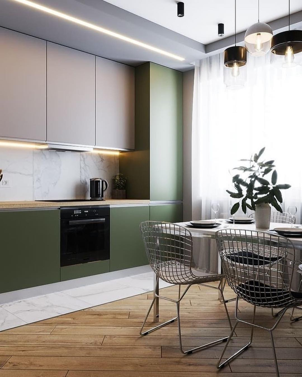 Смотрите нашу фотоподборку и… решайтесь! Пишите комментарии, как вам кухня в зеленом цвете?