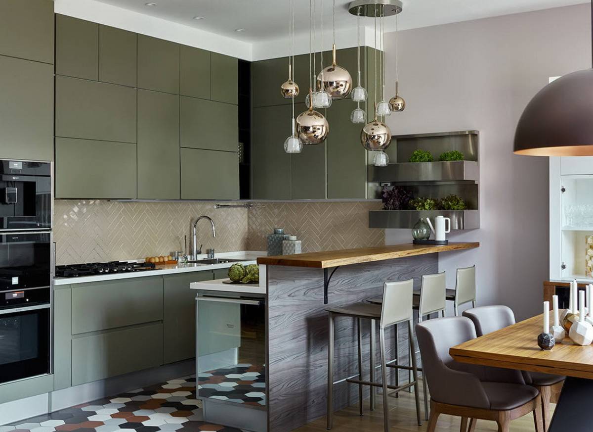 Оливковая кухня с стеклянным фартукомИсточник sovkalmykia.ru
