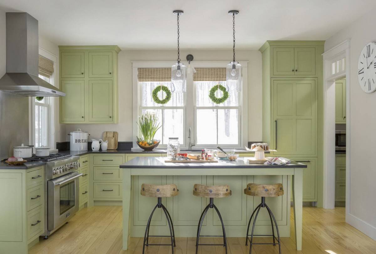 Рассмотрим самые модные и популярные тона зеленого, используемые для кухонь сегодня.