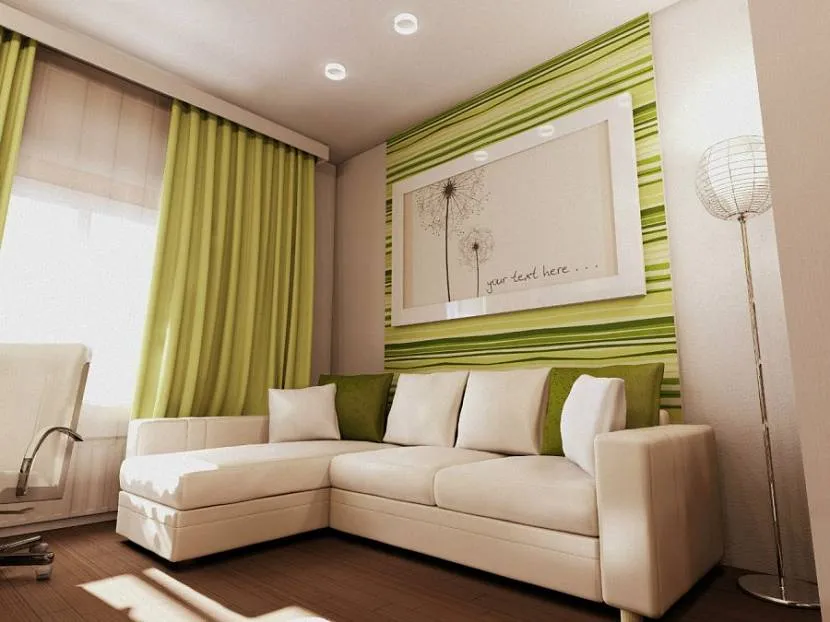 Тем, кому по душе зеленый цвет, можно и вовсе комбинировать в интерьере несколько оттенков. Светлый подойдет для покрытия стен, а шторы в таком случае могут быть ярче. При правильном сочетании оттенков гостиная будет смотреться очень стильно.