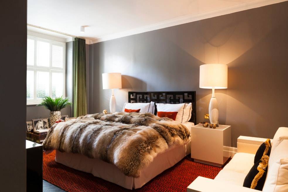 Серый цвет поможет создать довольно интересный дизайн помещения. Дополнить интерьер можно яркими оранжевыми или красными деталями. Особенно такое сочетание подойдет для гостиной.