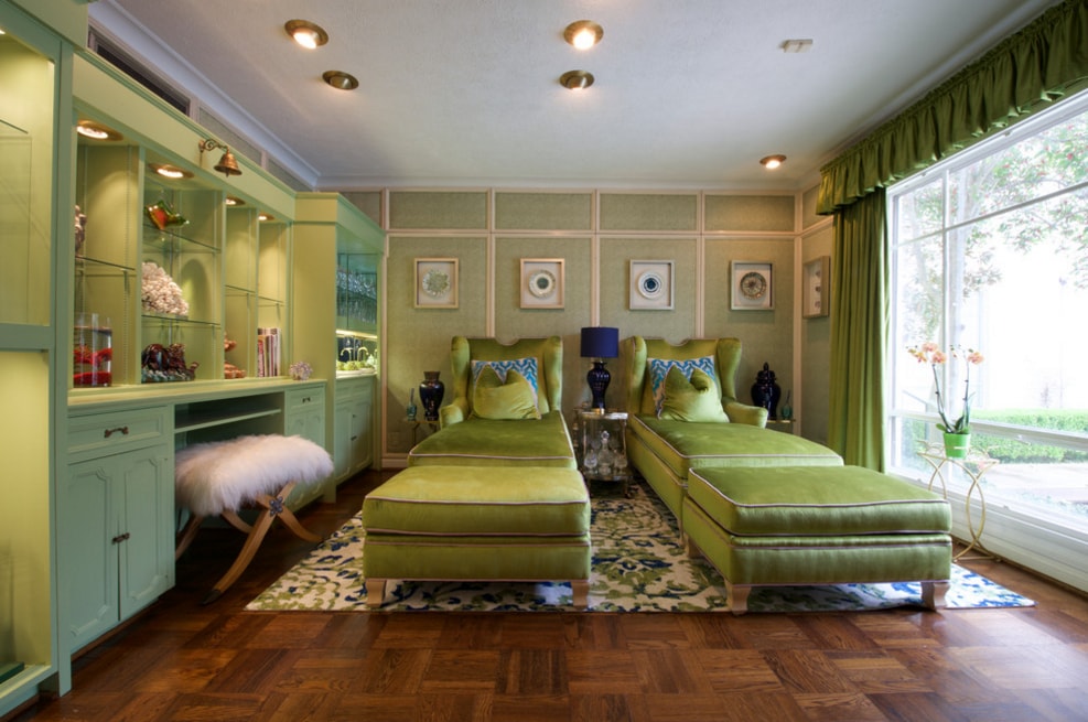 Насыщенность зелёного оттенка может визуально расширить или уменьшить пространство, а также ограничить или увеличить поступление естественного света в помещение.