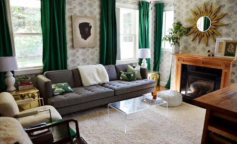 Зеленые шторы в гостиной