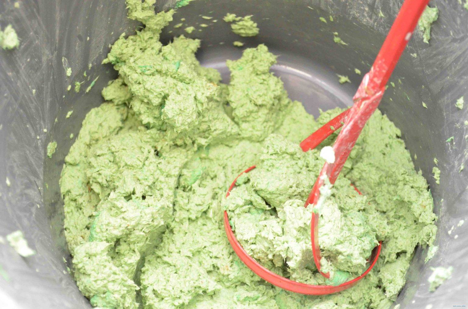 На 1 кг бумаги добавляем 0,4 кг гипса и ¼ пачки разведенного обойного клея.