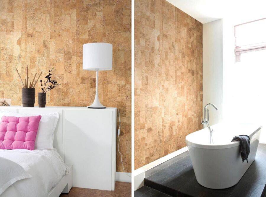 Обои из пробки стали еще одним современным оформлением стен. Производят их из коры пробкового дерева, поэтому станут прекрасным экологическим оформлением. Такие обои отличаются: