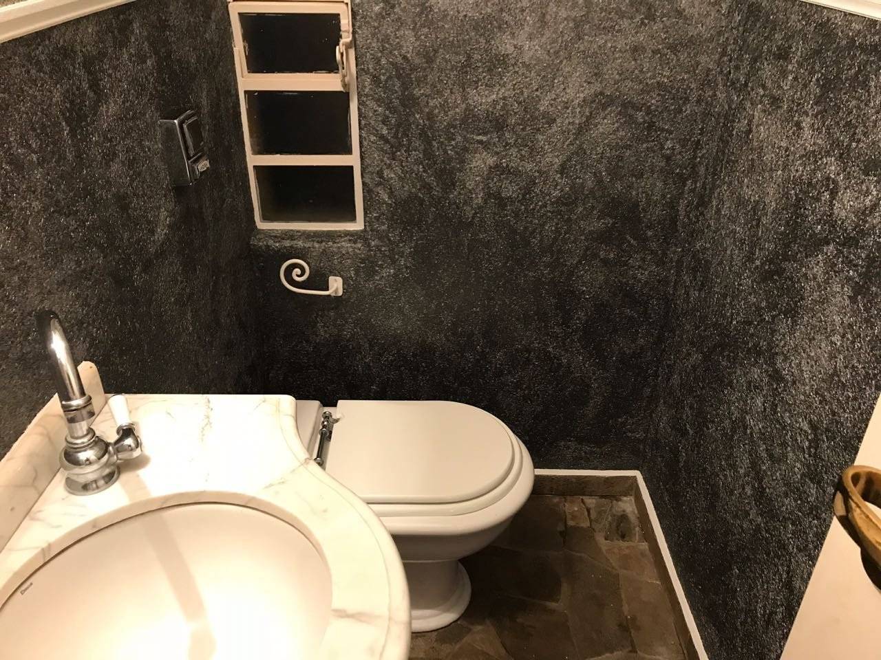Преимуществом использования жидких обоев в туалете является возможность нанести их на поверхность без швов.