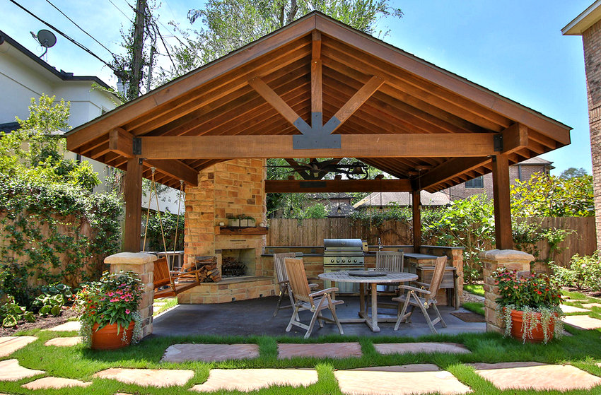 Сооружение навеса и зонирование мангальной зоны на даче: фото готовых объектов