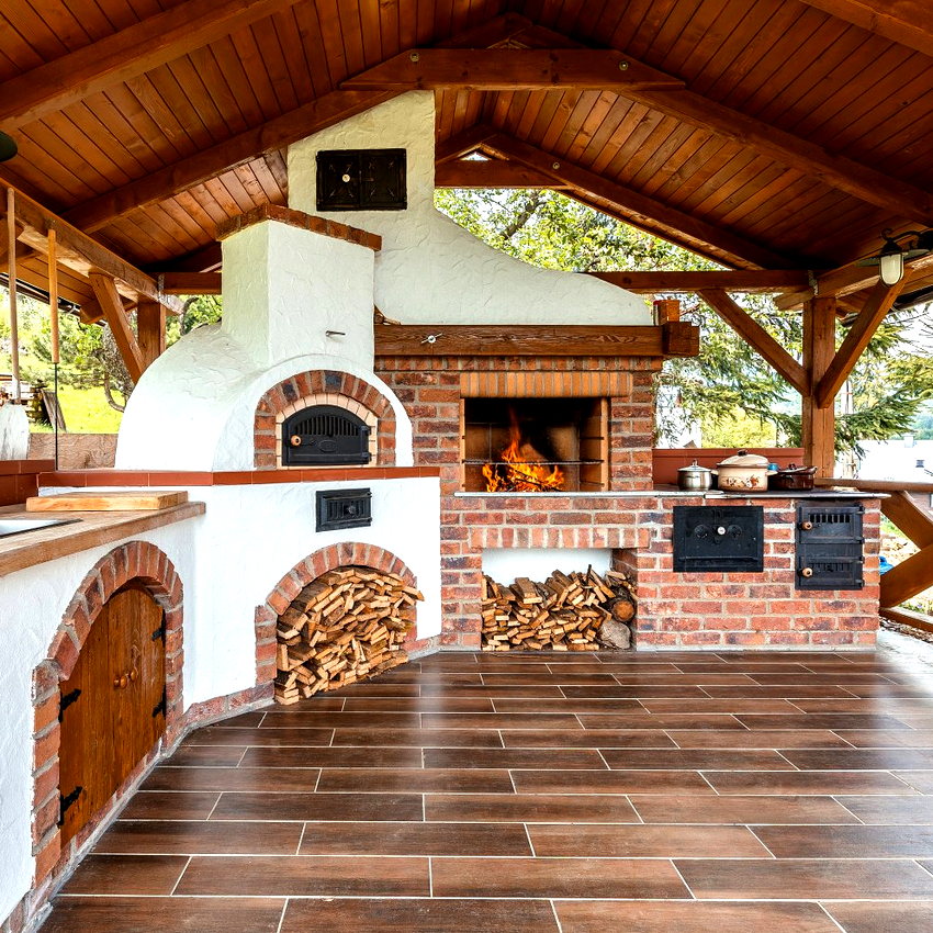 Все новое – хорошо забытое старое. Испокон веку на Руси славились русские печи, они были приспособлены для подогрева воды, приготовления разных яств: пирогов, печеных, жареных продуктов, копченостей – то есть мангал, барбекю, печка и казан в одном флаконе. Даже на шести сотках уместна будет красивая русская печь.