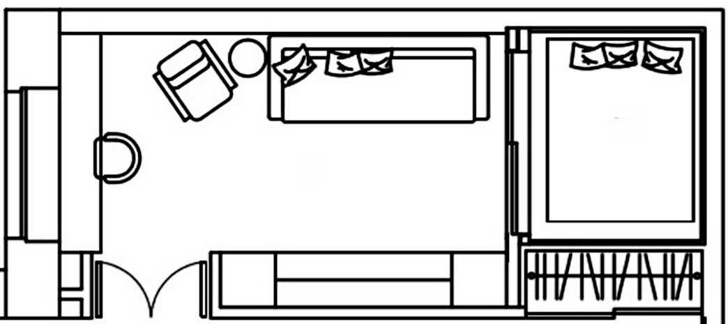 Не следует загромождать территорию, так как совместить гостиную и спальню нужно максимально комфортно