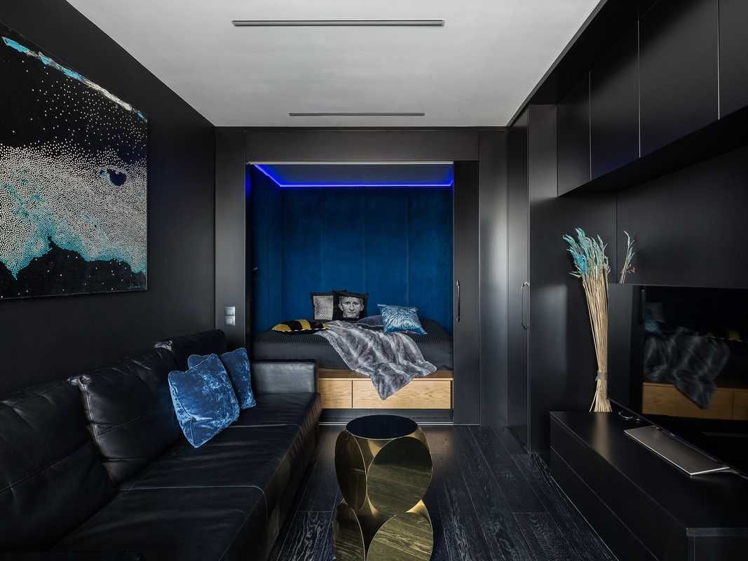 Смотреть весь проект: Чёрная квартира 47 м2 в стиле «Total black»