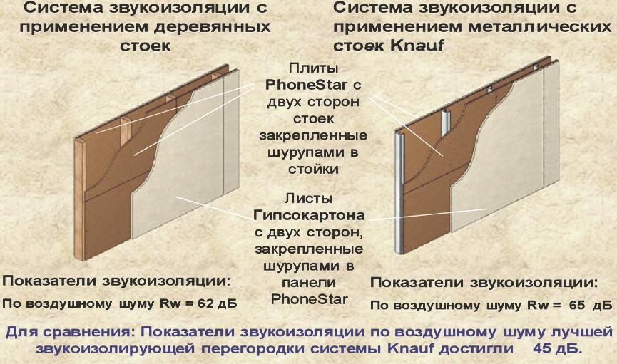 Как уже было описано ранее, сама конструкция при обычном креплении к стенам, полам и потолкам будет передавать все вибрации в звуки. Поэтому о звукоизоляции нужно позаботиться еще на этапе проектирования будущей стены.